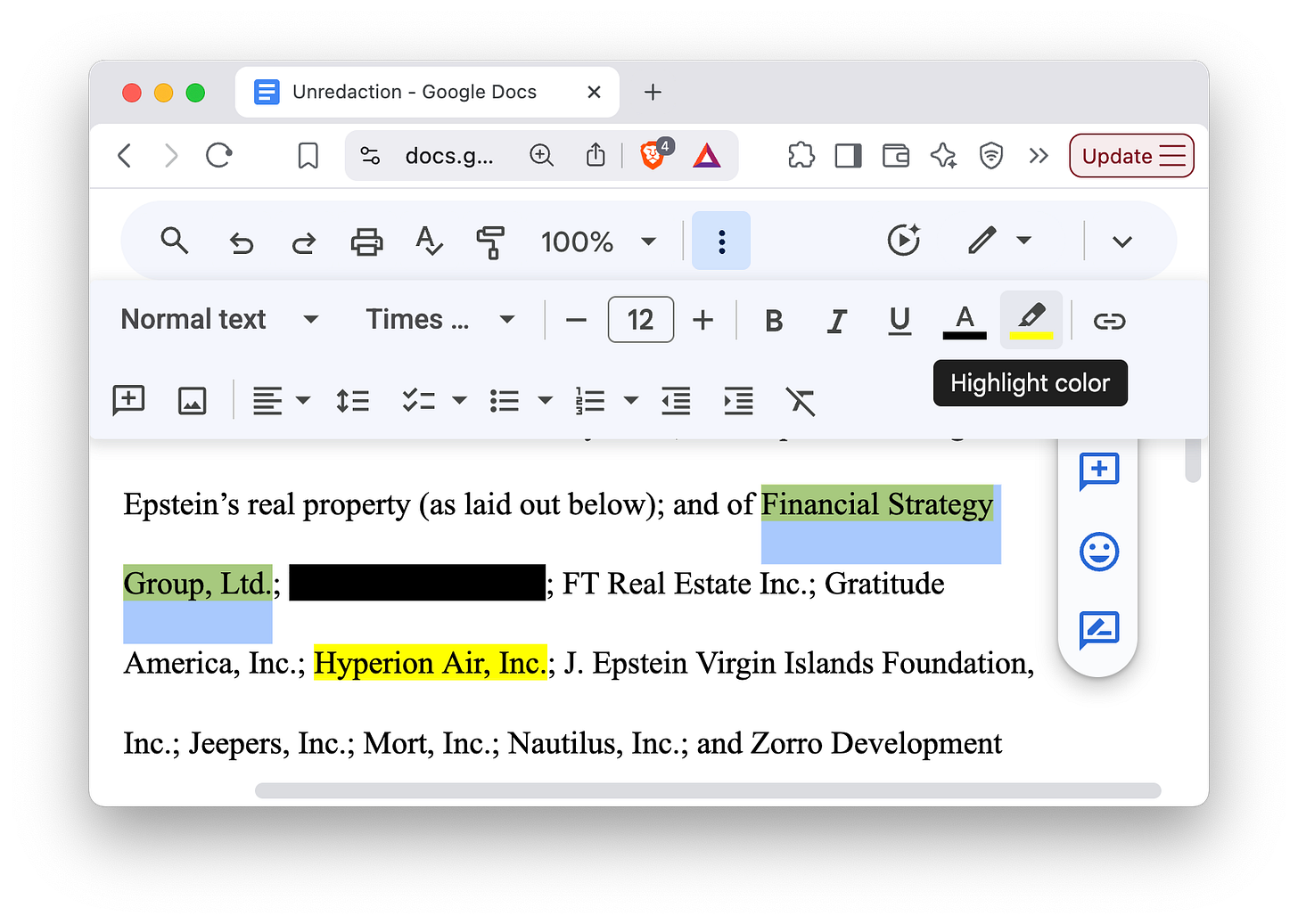 Changing the highlight color to black is something you can try at home, but what happened with the Epstein PDF files is slightly different. Instead of changing the background, they put black bars in front of the text. But anybody reading the PDF file online can still select the text, copy it, and paste the text somewhere else in order to easily view it.